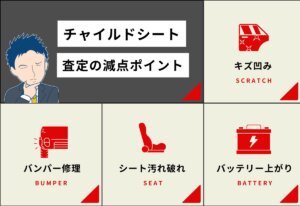チャイルドシートは査定対象外であり、査定時には取り外しを求められます。車査定前に一度も外していない場合は、下にゴミや汚れが溜まっていることがあります。