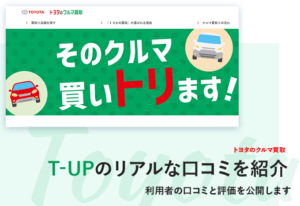 T-UP(ティーアップ)は、トヨタが展開する中古車買取ブランドで、全国のトヨタ販売店と連携したスムーズな流通網を強みとしています。