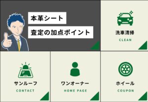 購入後に張り替えた場合は、必ずしもプラス査定につながるとは限りません。また、レザーとファブリックのコンビシートは評価が分かれる傾向があります。